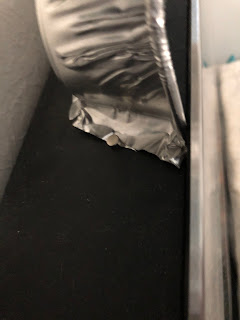 3. Using the length of the heating vent on your fireplace measure if you need to shorten or lengthen the cut edge of the pan. We needed to lengthen our pan, so we had to bracket the two pans together to keep heat from escaping out of the seams. My husband actually had super tiny, super strong magnets that he had pulled out of obsolete computers and he used two of these, one on the outside and one on the inside keeping the seams together. As I do not expect most people to have tiny, super strong magnets, you could use brass paper fasteners to "weld" the pieces of the roasting pan together.