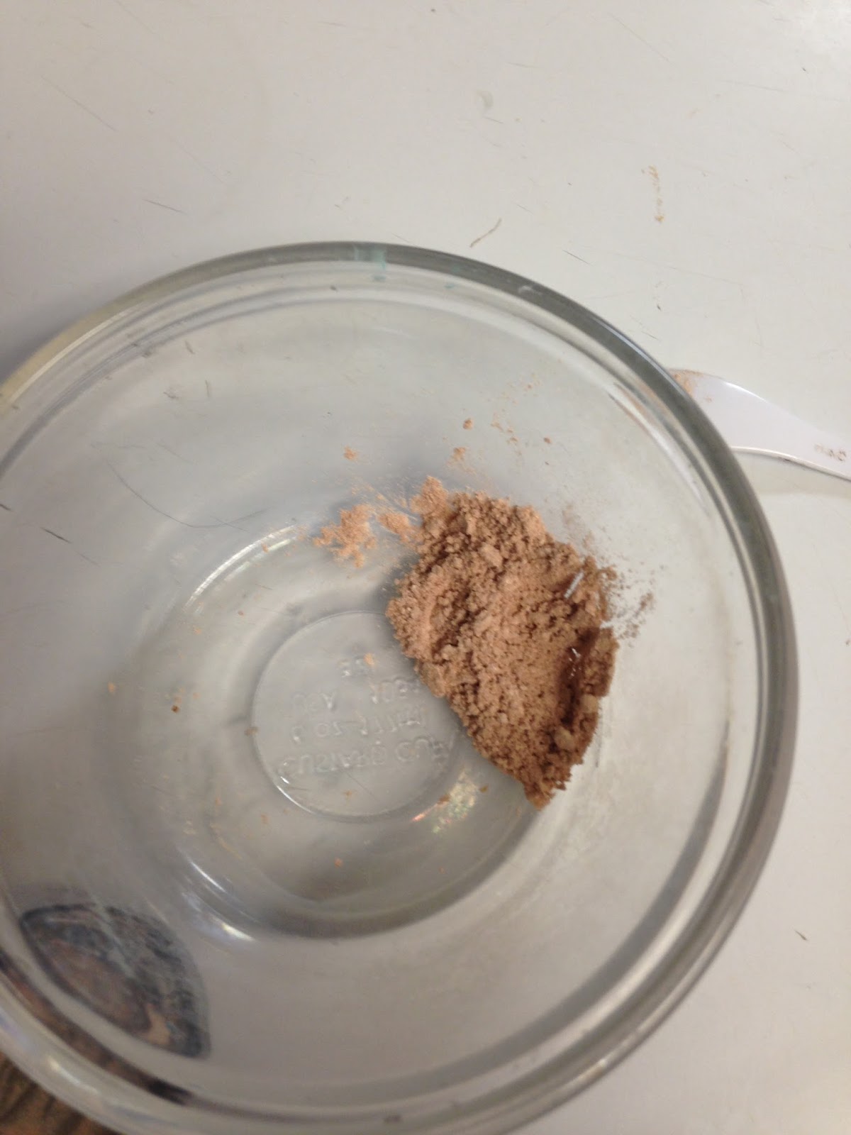 1. Using the tiny spatula, scoop out all of the eye shadow in the compartment into the custard bowl. (I know this seems counter-intuitive, to completely destroy the eye shadow, but you need to turn all of the shadow back into loose powder form in order to repair it.)2. Crush the powder with the spatula until it looks like loose powder.
