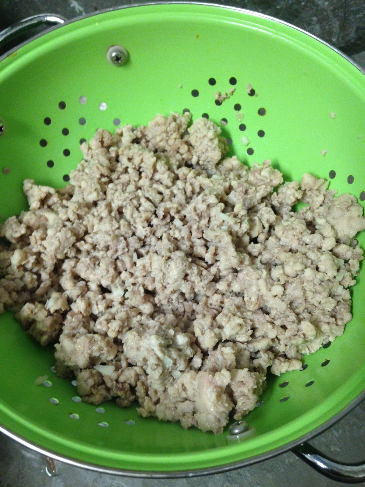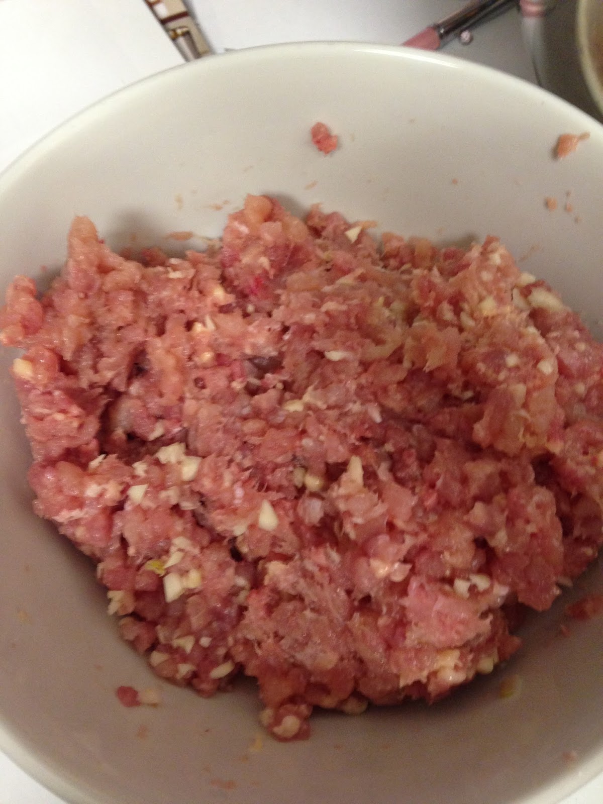 | Ground Chicken with garlic in it. |