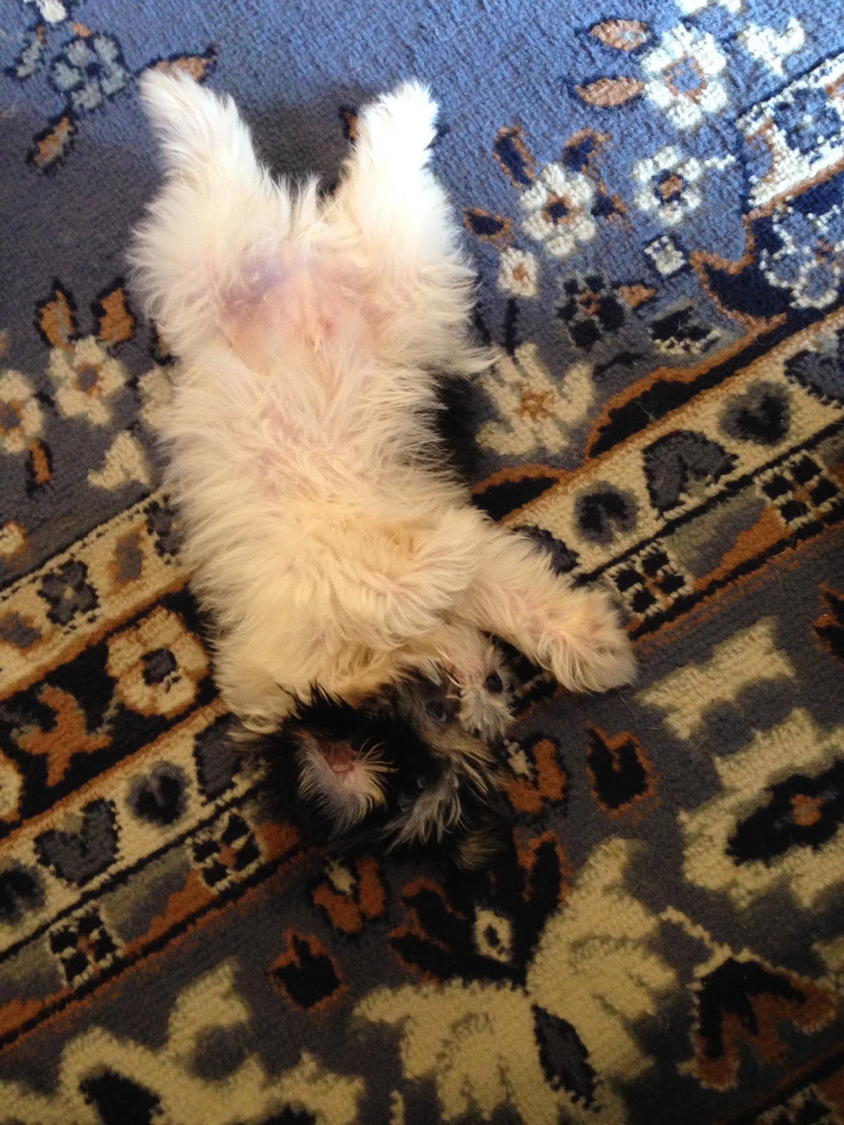 | Basil's friend, Mogli, is obviously quivering with excitement. (This is my sister-in law's dog, he is a living stuffed toy and is one of the cutest dogs on the planet.) |