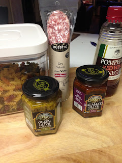 Today's recipe is a simple one - as is this post. At another time, I will show you a more complicated, and homemade version of this dish, but it is Thursday night and we just don't have time for that. This is one of the more expensive of the Frugal Femme meals. All the ingredients combined total about $20.00, which is an average of $10.00 per person. But this meal is also a 4 meal dinner or a "leftover dinner"- as there will be enough left over for another two meals. When you look at it that way, that makes it $5.00 per meal. The cost is in the olives, its one of the reasons why I want to plan an olive tree in my back yard.