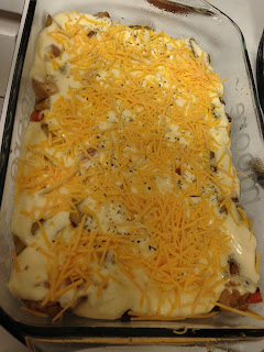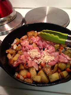 2 large potatoes, cubed (I had a GIANT golden potato, so I only used one), peeled and cut into cubes (Since I had a golden potato, I did not peel my potato, but I wouldn't definitely make sure to peel if I was using a russet potato.)
