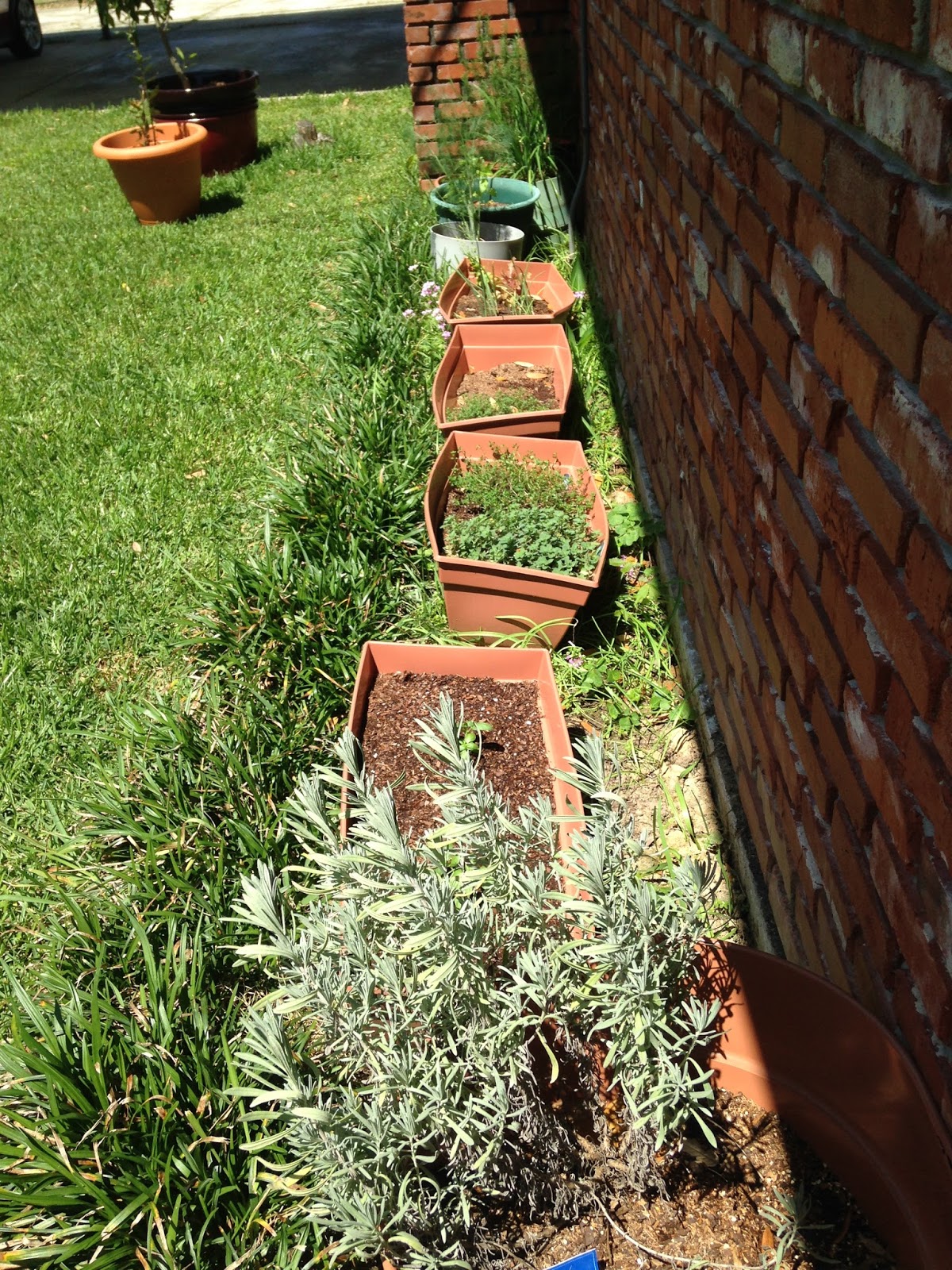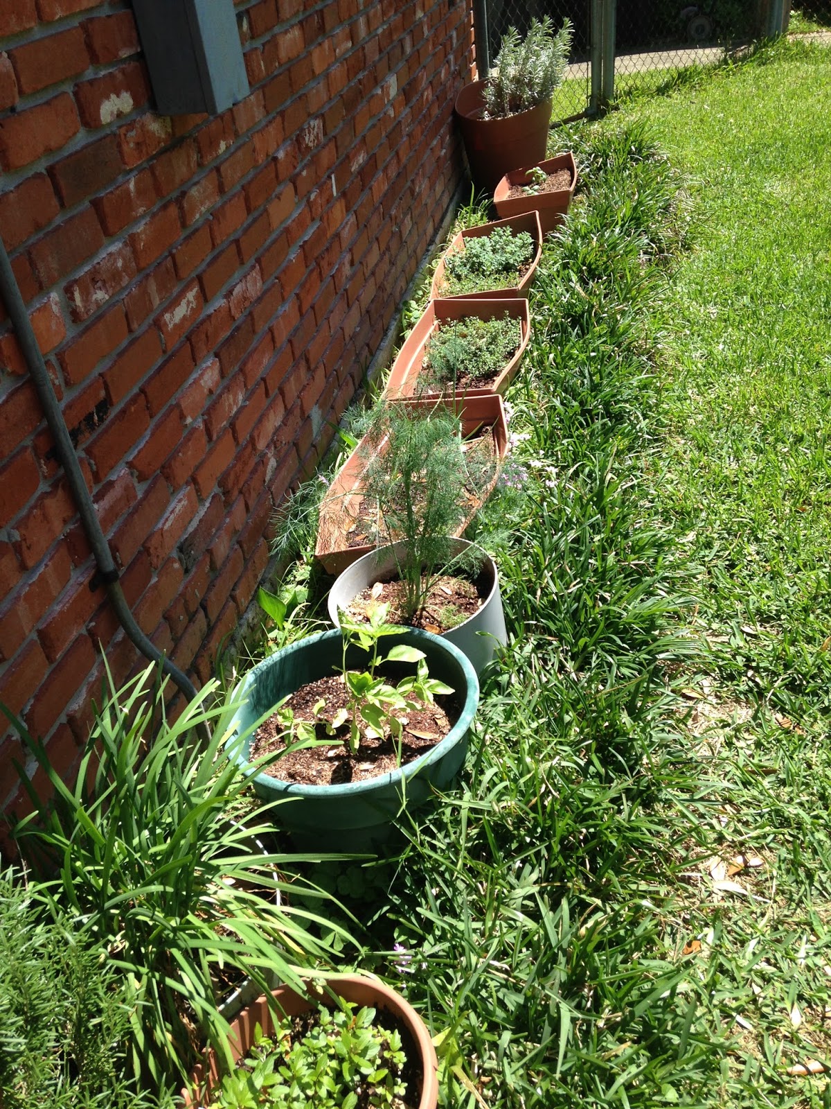 As you can see, my herb garden is not the beautiful thing that you see in commercials and movies, but the herbs are yummy and it is close to my kitchen. |