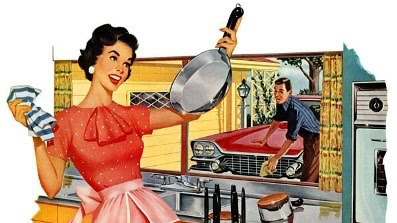 | I love these illustrations from the 1940's. I especially love that she seems to own five different aprons. |