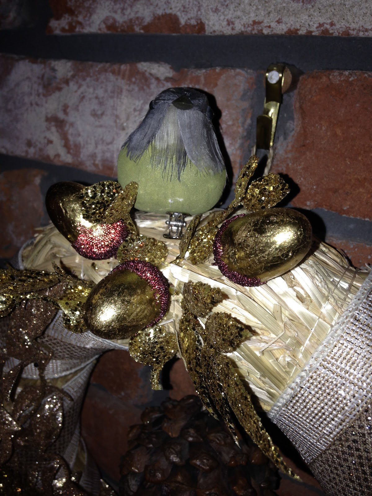 Add some of the gold leaves attached to the acorn branch so that you get some color difference in your "greenery".