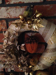 I went to Michael's today with a plan for a wreath in my head. I was going to use a styrofoam wreath form, a brown feather boa, some orange leaves and the acorn made out of pine cone and rope that I had purchased there a couple of weeks before for $1.50 and make myself a wreath for the mantle.