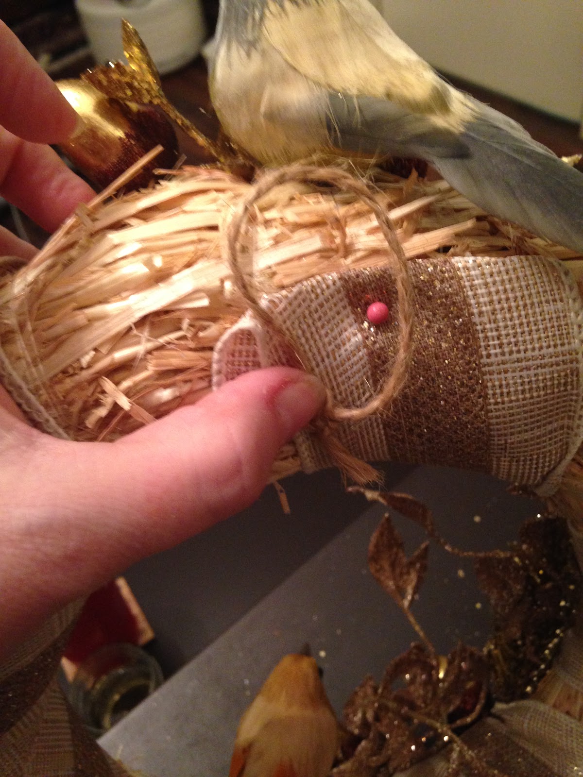 Near the straw wreath I found some little life-like birds for $2.50 a piece. I bought two.