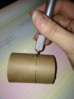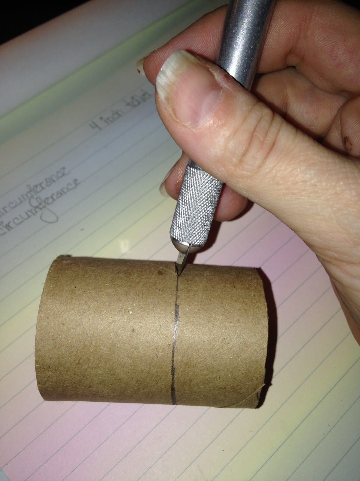 Then, using a ruler or tape measure, mark the width of your napkin rings on the toilet paper roll.