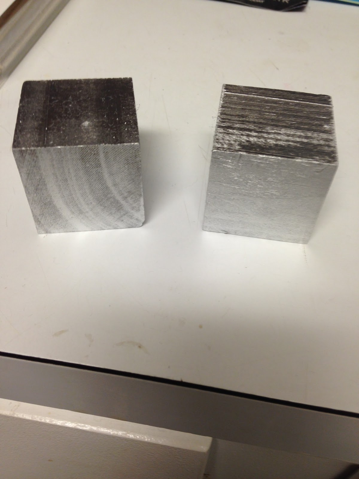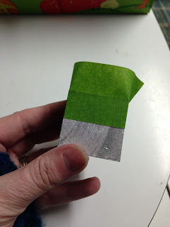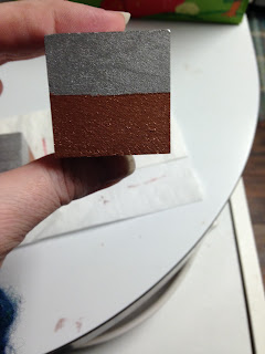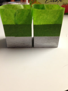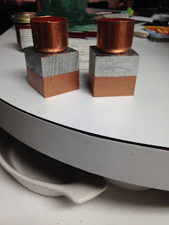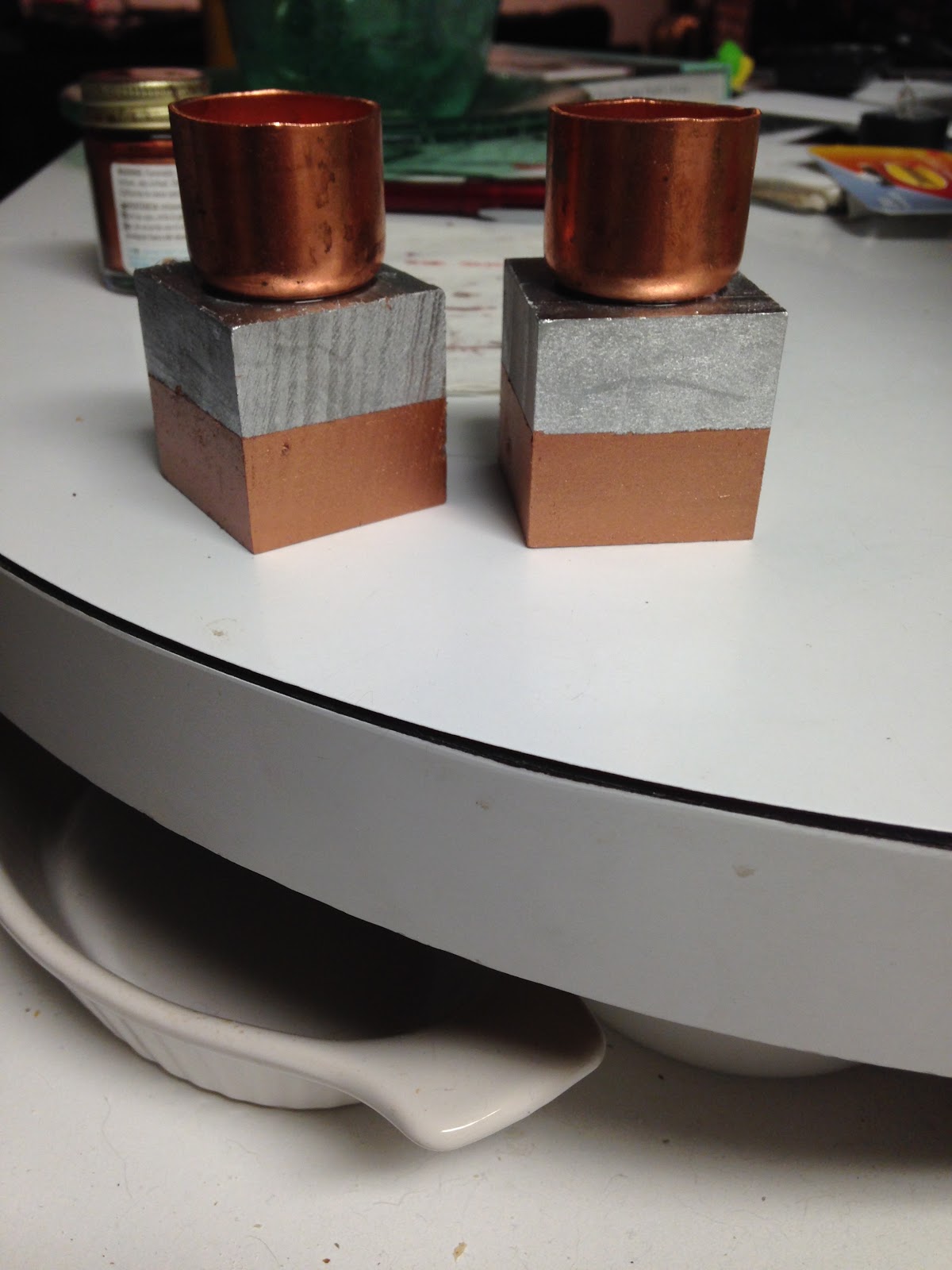 2. Once the silver paint has dried, put painters tape on the blocks, leaving whatever part you want to paint uncovered. I chose the bottom that I wanted to paint copper.