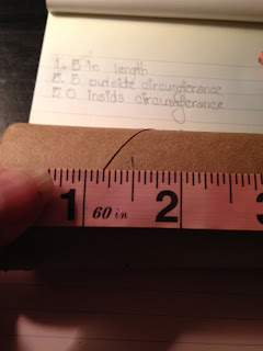 4. Measure around the toilet paper tube using the tape measure. The outside measured 5.5 inches. The inside of the tube measured 5.25 inches. These will be the lengths of the vinyl to cut.