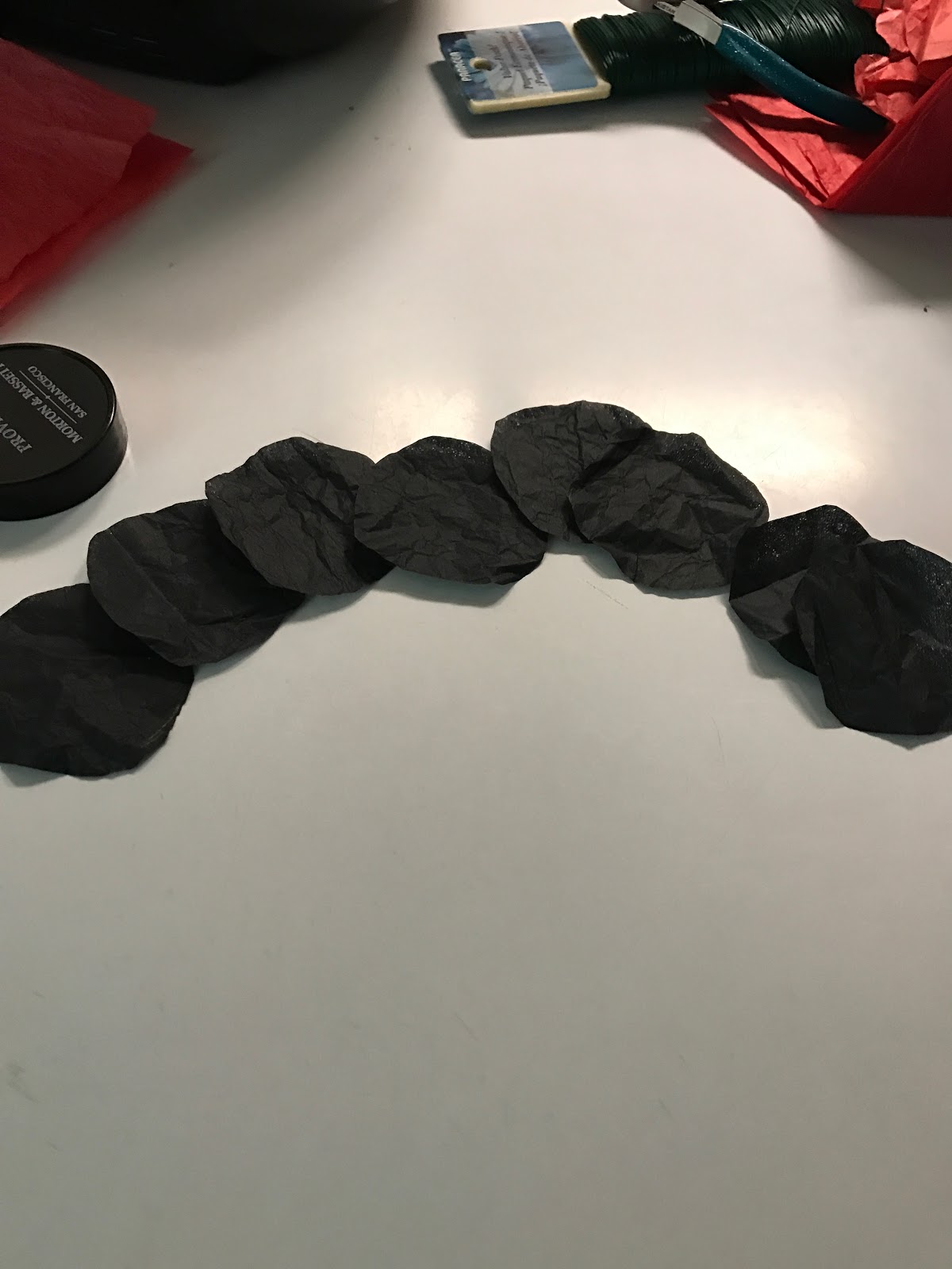 14. Cut the circle out of the tissue paper. You should now have eight small black tissue paper circles.