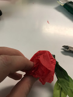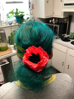 I still wanted to carry on the tradition of showing that I remembered why were celebrating Memorials Day and I wanted to wear a poppy. I could have gone to Michael's or Hobby Lobby and purchased a flower, but that didn't have the same feel for me as the tissue paper poppies. So I decided that I would make my own tissue paper poppy and wear it in my hair.
