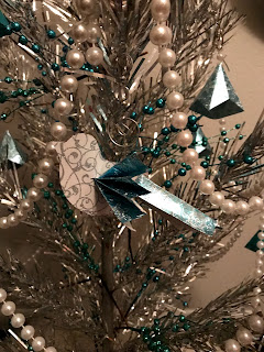 Here is my little aluminum tree with my take on the ornaments from the inspiration tree.