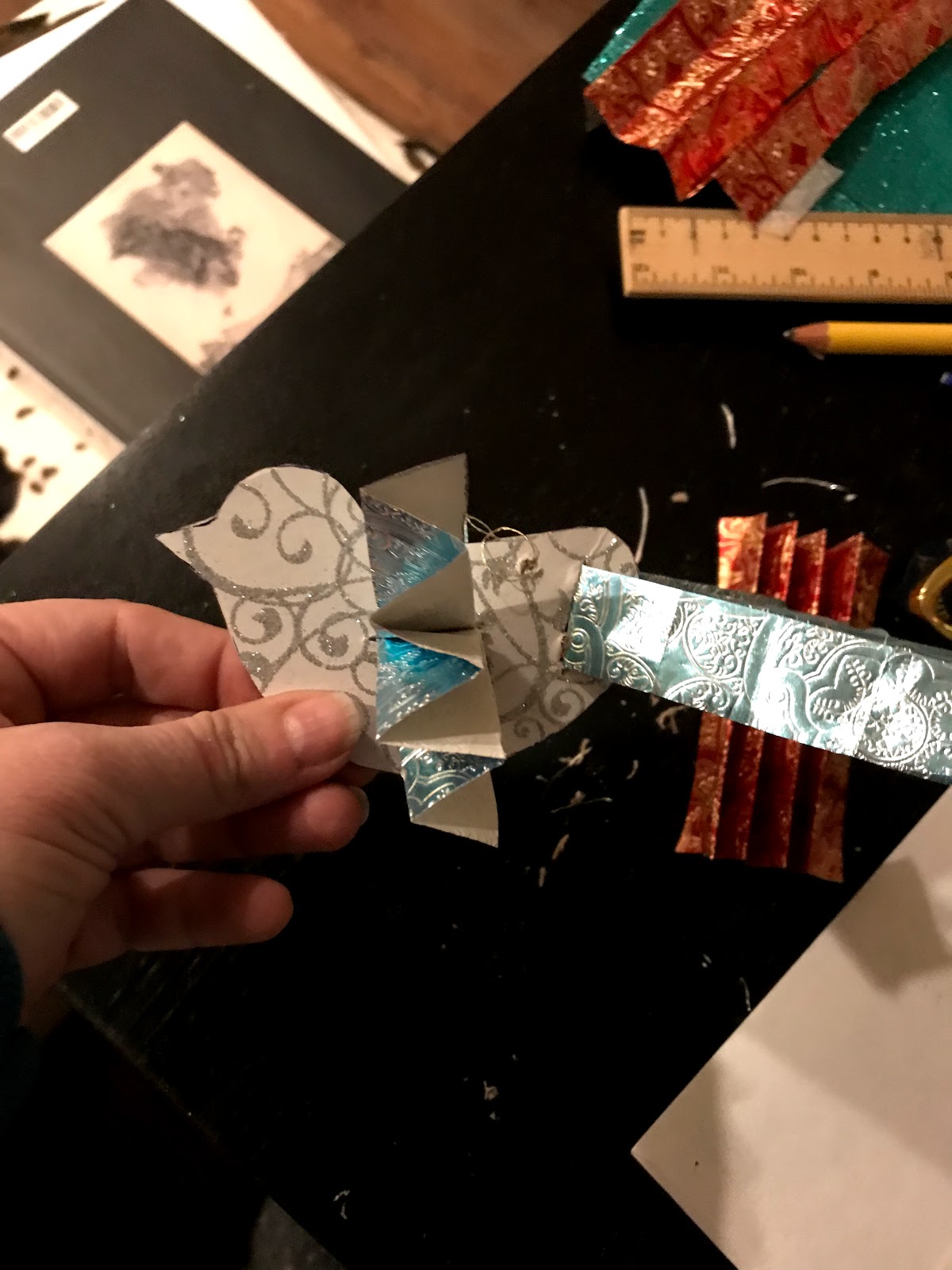 I know they look completely different, but the same technique that was used to make the paper ornaments is used to make the paper star. And, in many ways, the star is easier than the ornament.