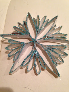 9. Using a paint brush, paint Elmer's Glue along the edges of the snowflake. There are two ways that you can go about putting the glitter on the glue: