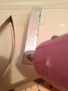 7. Using a hot glue gun, glue the outside bottom of one of the centimeter strips and attach two of your loops/petals together.