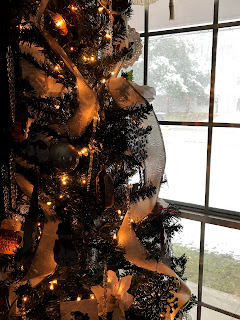 My artsy picture of one of the ugly Christmas trees in the pub next to the snowy window. |
