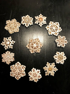 Here are some pictures on how my ornaments turned out. For each color batch, I did not paint any of the snow flakes the same so that each snowflake could be unique. (As we know, no two snowflakes are ever alike.)