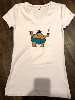 Unfortunately, sumo t-shirts are not cheap. Which I should have known from the cost of hockey and football jerseys that I have looked for as gifts for friends and family. So my husband and I decided that we would just do generic sumo shirts without one of our favorite wrestlers. This was much easier for my husband than it was for me. I guess there aren't a lot of female sumo fans in America because pickin's were slim and I definitely did not want to wear a shirt that proclaimed that I was a "Sumo Wrestler in Training" - yes, that is a real thing. I finally narrowed my options down to this shirt on Amazon: