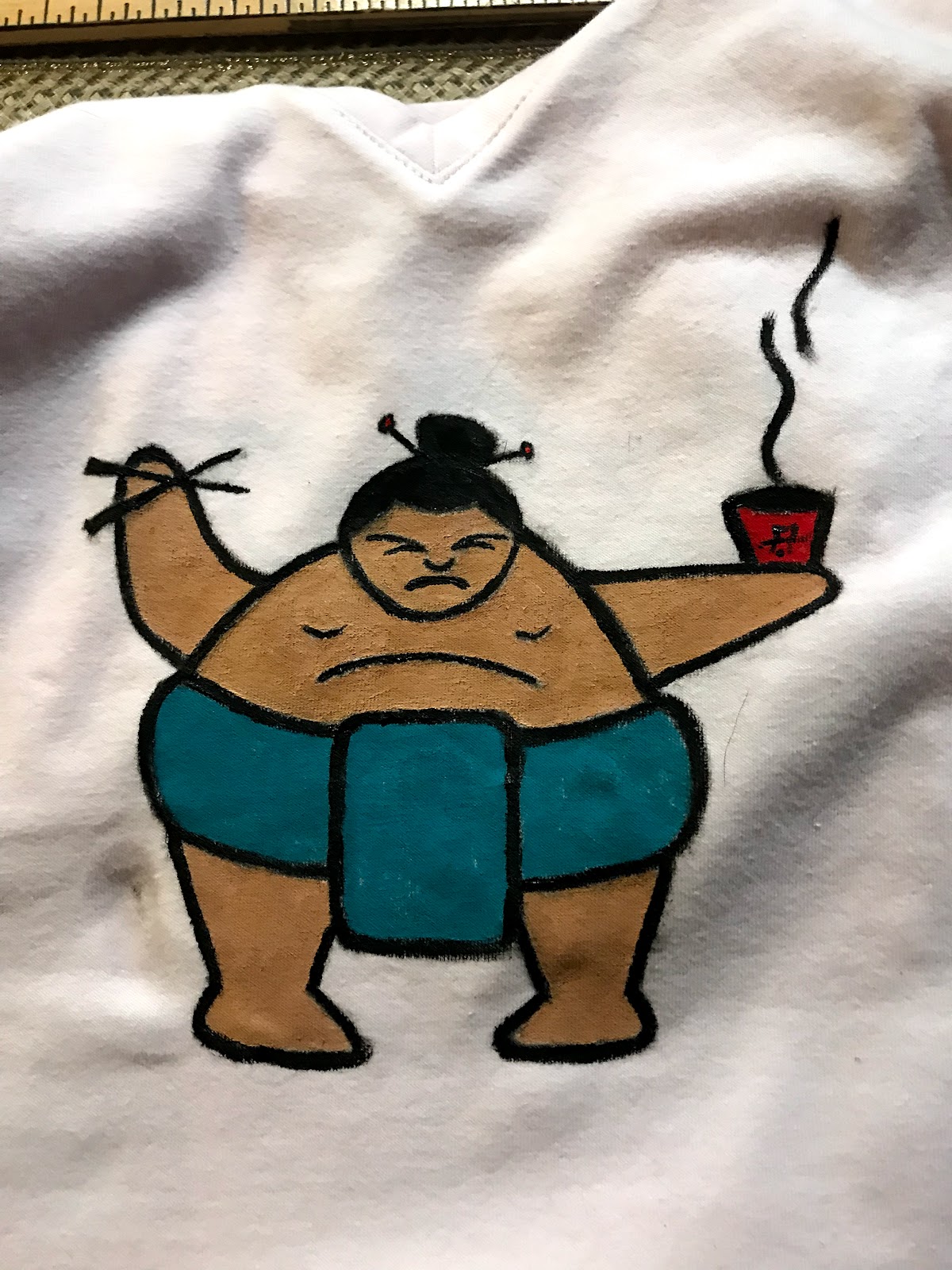 It combines two of the things I deeply enjoy sumo and ramen. Plus, style-wise, this little guy reminds me of the geisha poster in Jen's office from the IT Crowd. (A fantastic comedy from Great Britain that you should watch if you haven't already.)