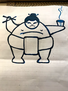 It combines two of the things I deeply enjoy sumo and ramen. Plus, style-wise, this little guy reminds me of the geisha poster in Jen's office from the IT Crowd. (A fantastic comedy from Great Britain that you should watch if you haven't already.)