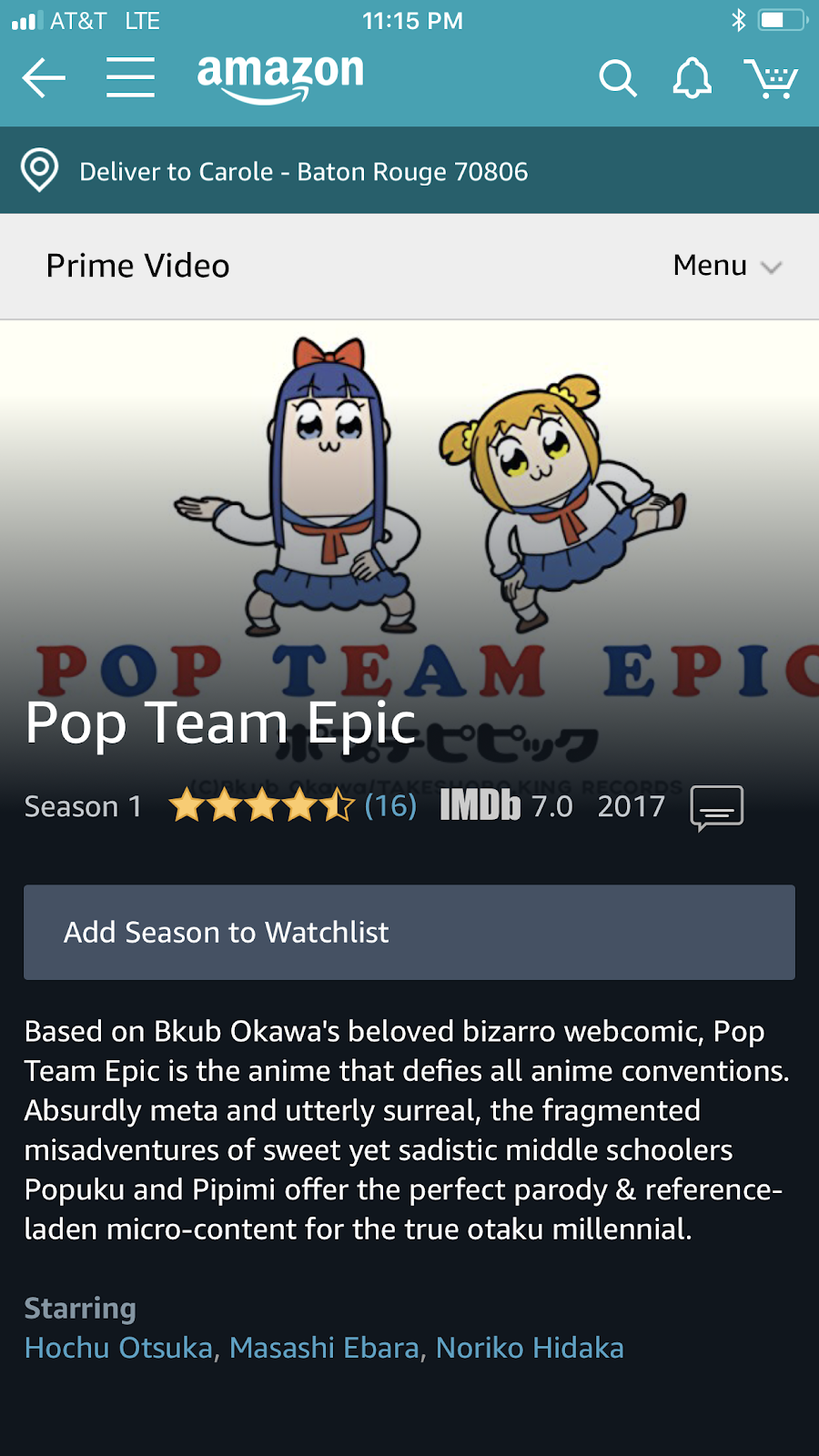 I found a new anime cartoon that cracks me up called Pop Team Epic.
