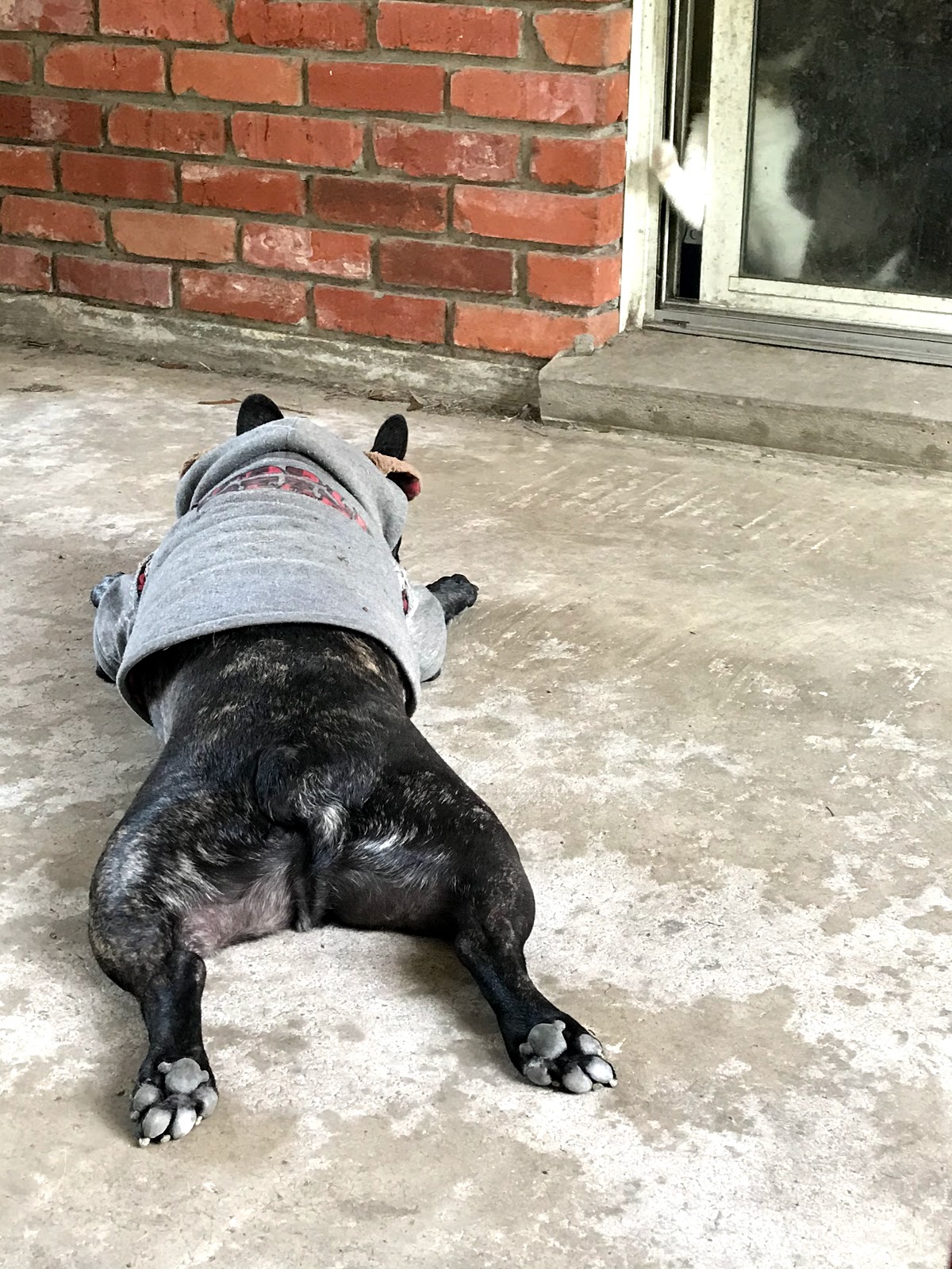 My husband took Moss, our adventurous French Bulldog, on a trip to the coffee house to get me some fancy froo-froo coffee and I started preparing an omelette.