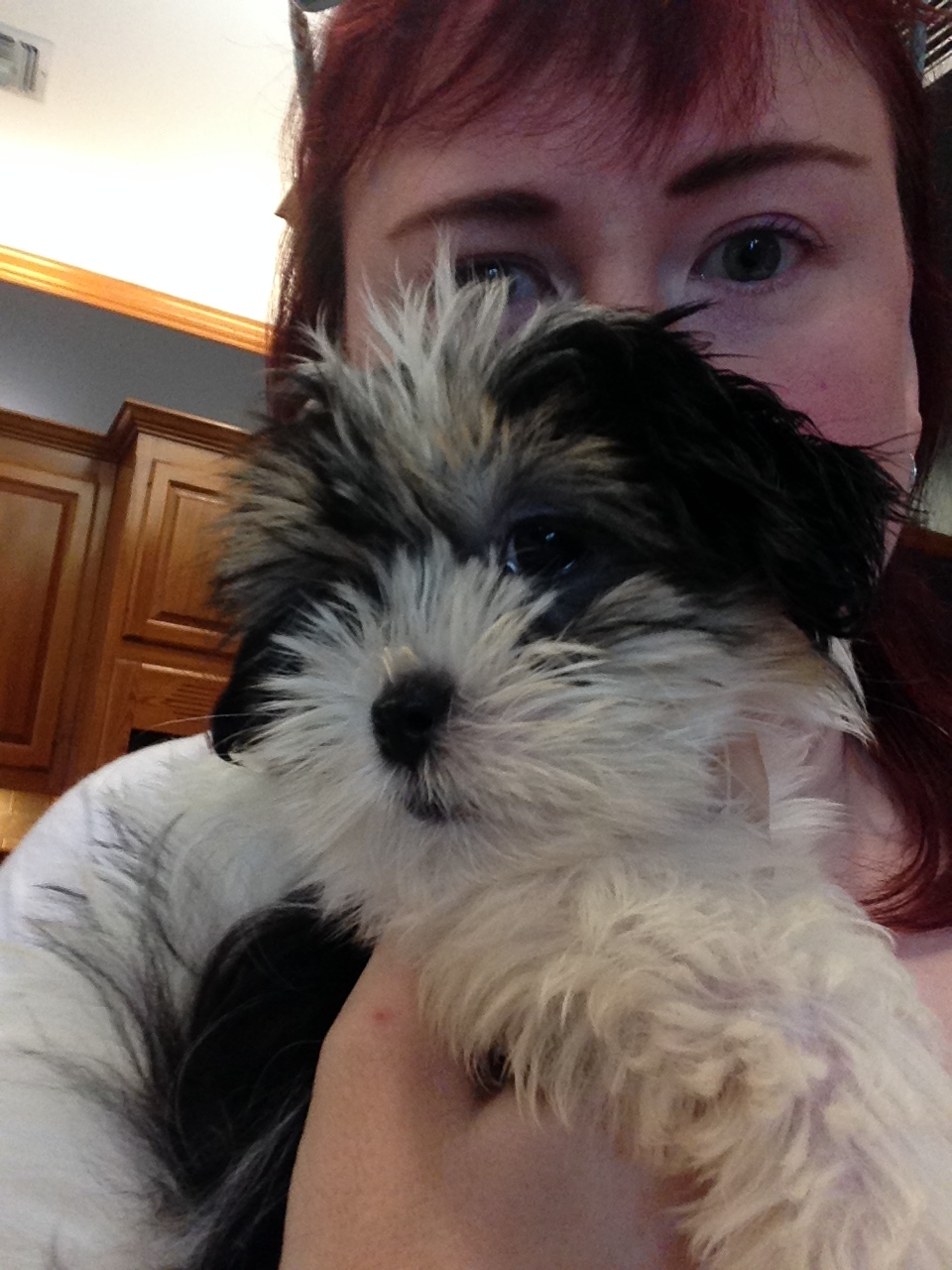 | Basil's friend, Mogli, is obviously quivering with excitement. (This is my sister-in law's dog, he is a living stuffed toy and is one of the cutest dogs on the planet.) |