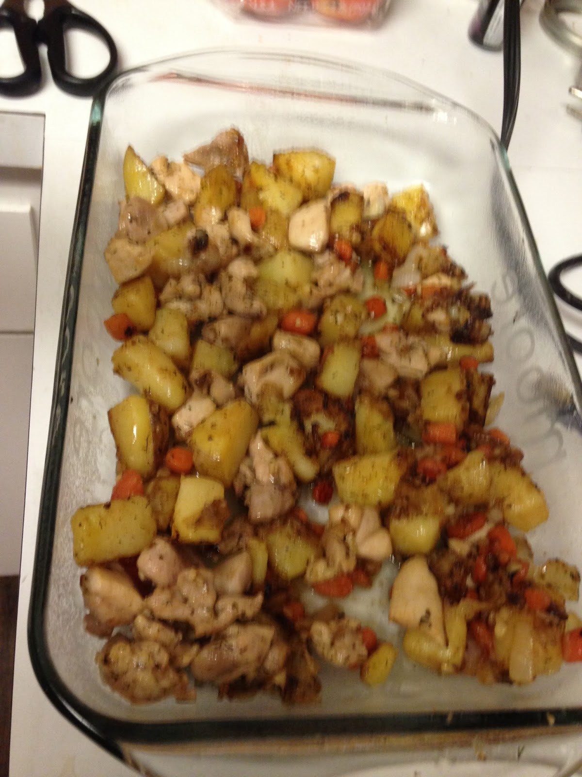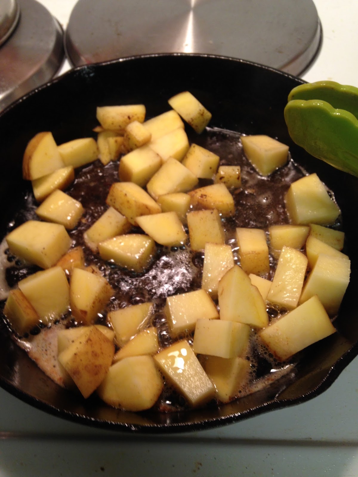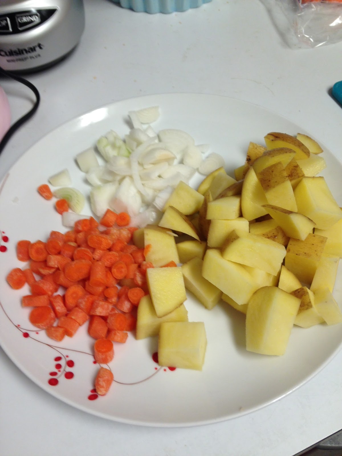 2 large potatoes, cubed (I had a GIANT golden potato, so I only used one), peeled and cut into cubes (Since I had a golden potato, I did not peel my potato, but I wouldn't definitely make sure to peel if I was using a russet potato.)