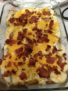 To serve, remove from baking dish and sprinkle with creole seasoning. (Taste the casserole before you do this, depending on the bacon and the cream of chicken soup you used, this may be salty enough for you. I always try to use low sodium everything on my dishes so that I can try to control the salt, so I usually find that it is okay with an added sprinkle but tasting first never hurt anyone.)